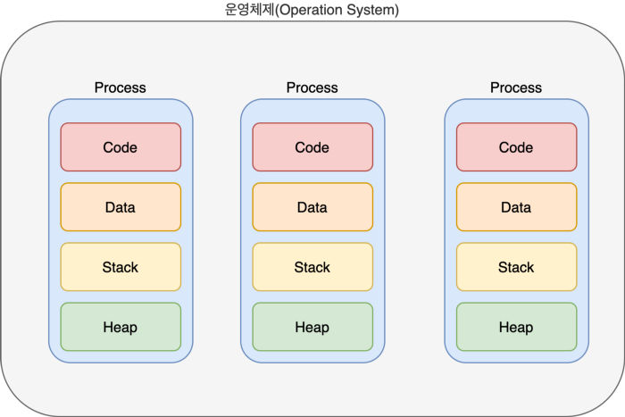 각각의 프로세스는 별도의 주소 공간을 가지고 독립적으로 실행된다.