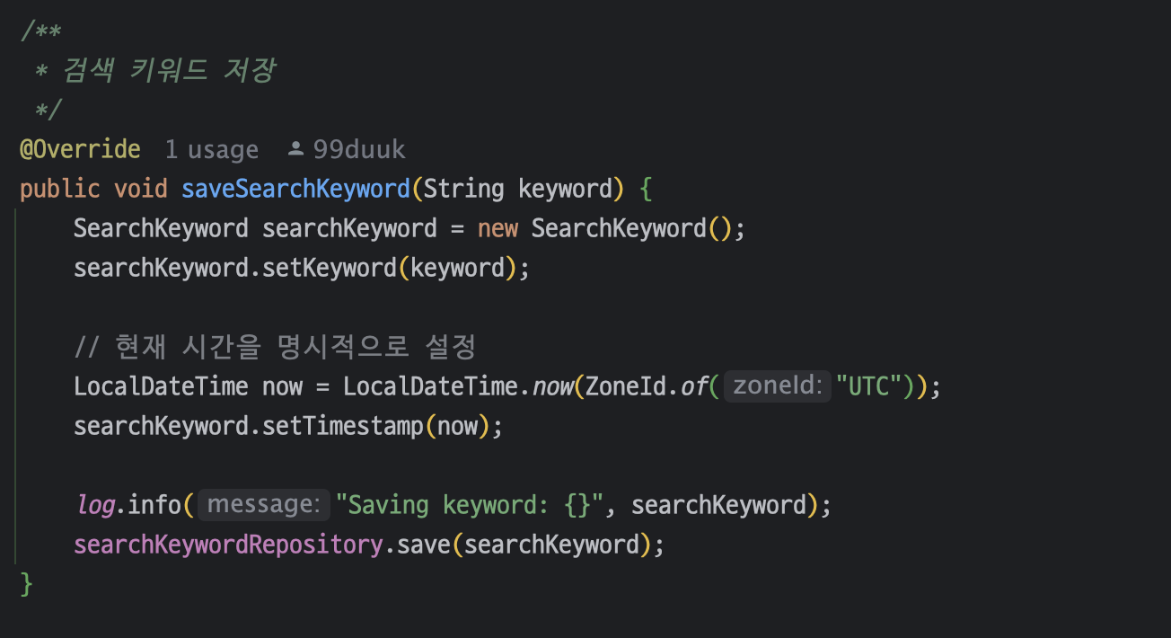 검색 키워드가 입력될 때마다 해당 키워드를 저장하고, 추가된 시간에 따라 집계할 수 있도록 저장했다.