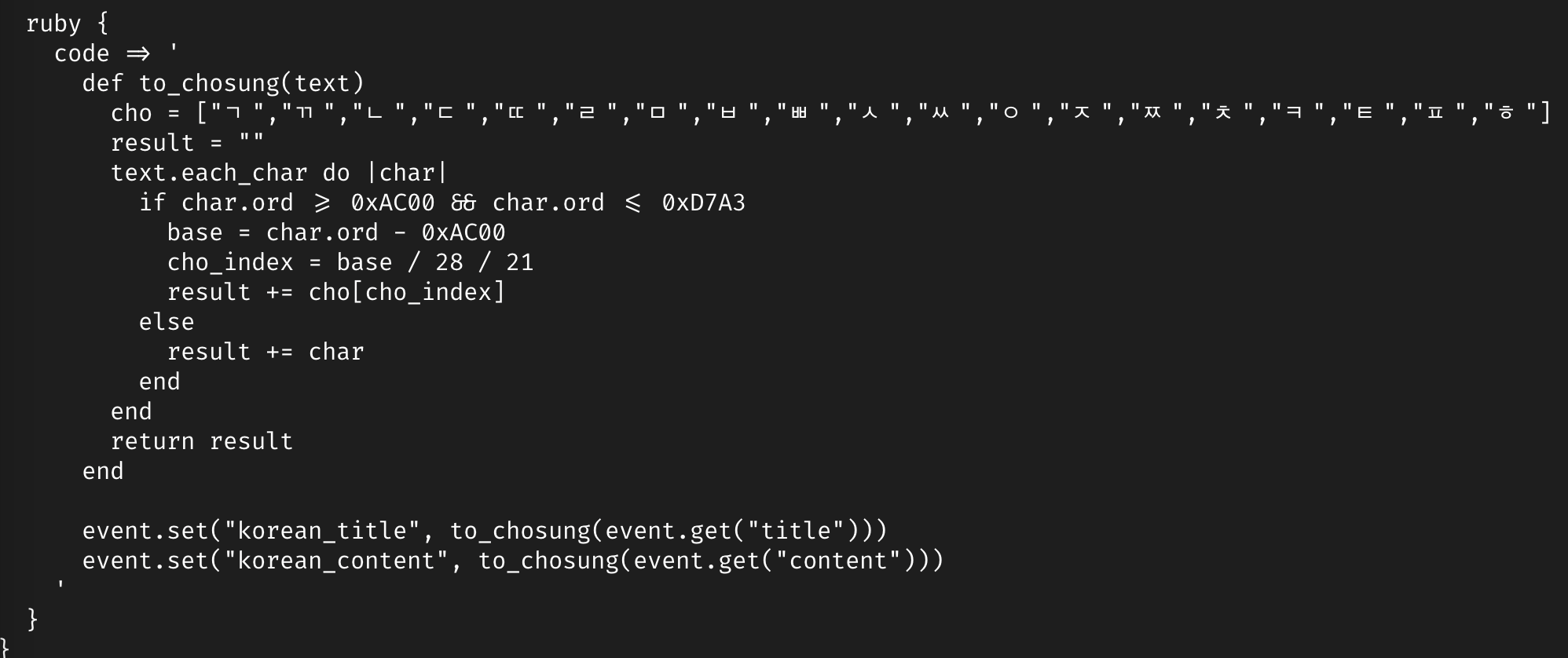 event.set("korean_content", to_chosung(event.get("content")))