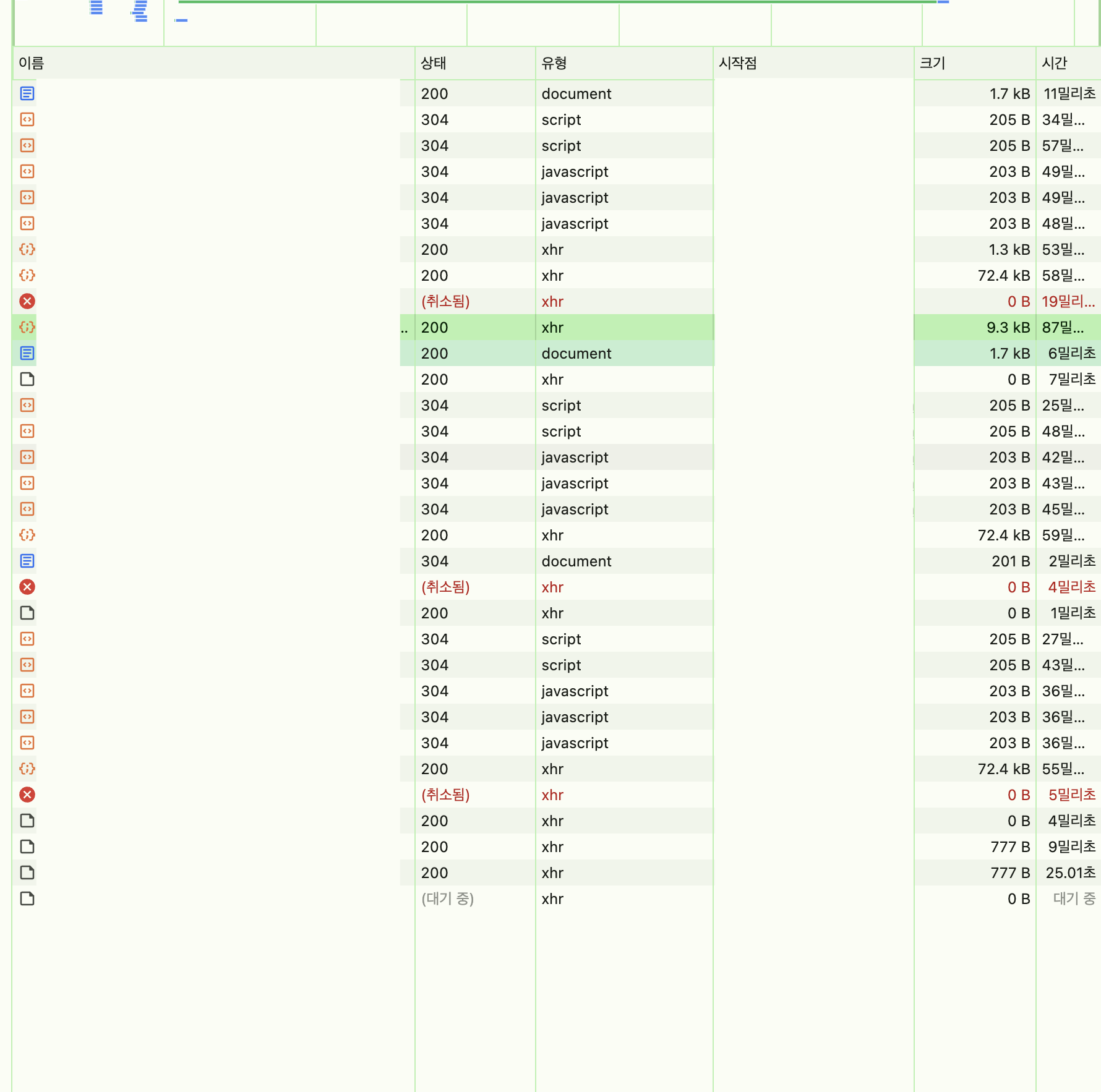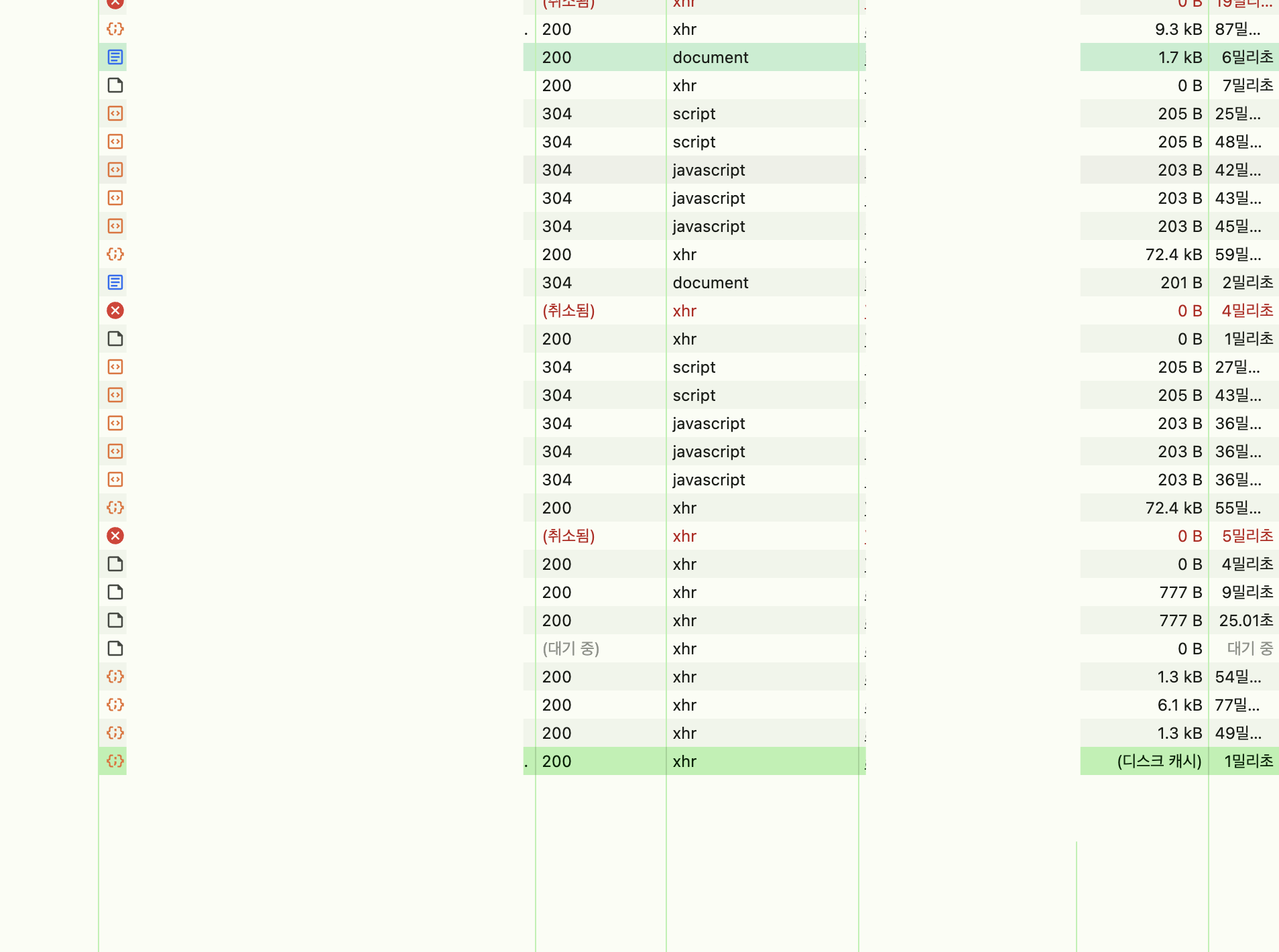 + 브라우저의 네트워크 탭을 한참을 들여다보다가 어떤 파일이나 요청은 설정 하지도 않았는데 이미 304로 캐시되고 있었다.