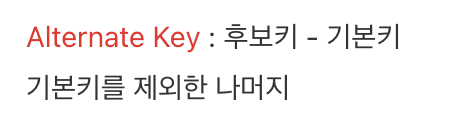 Alternate Key : 후보키 - 기본키