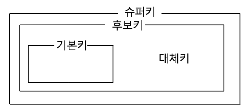 ----> 多 슈퍼키 中 키 구성하는 속성 수가 가장 적은 것이 후보키