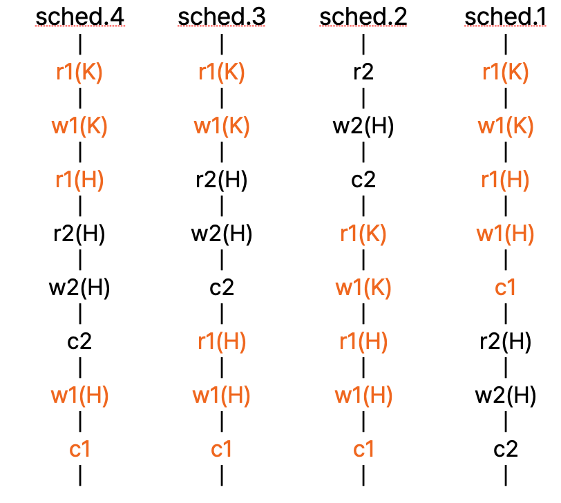 2. 양 트랜잭션 내 conflicting operation 실행순서 동일