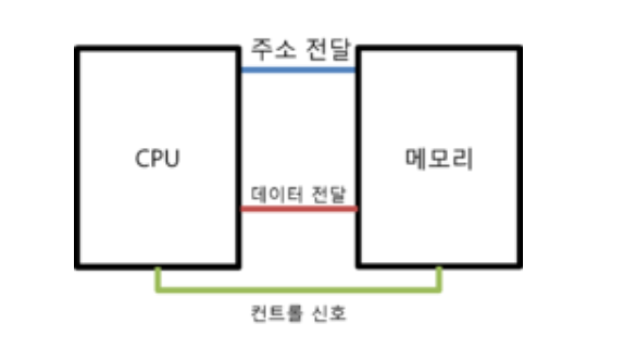- CPU는 주소 전달 버스, 데이터 전달 버스, 컨트롤 신호 버스를 통해 메모리에 접근