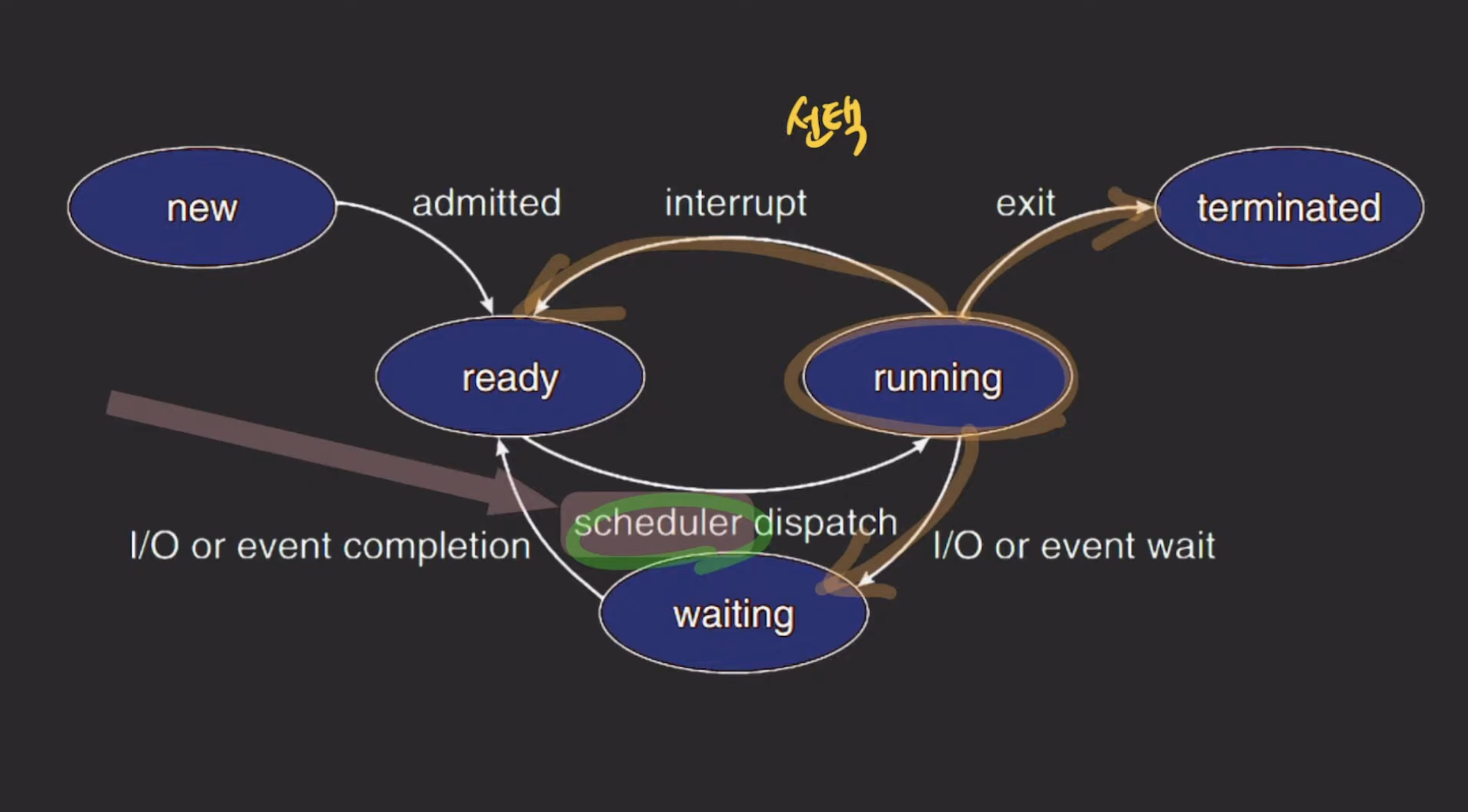 i/o 작업할 수도(waiting) 있고 ready 상태가 될 수도 있다.