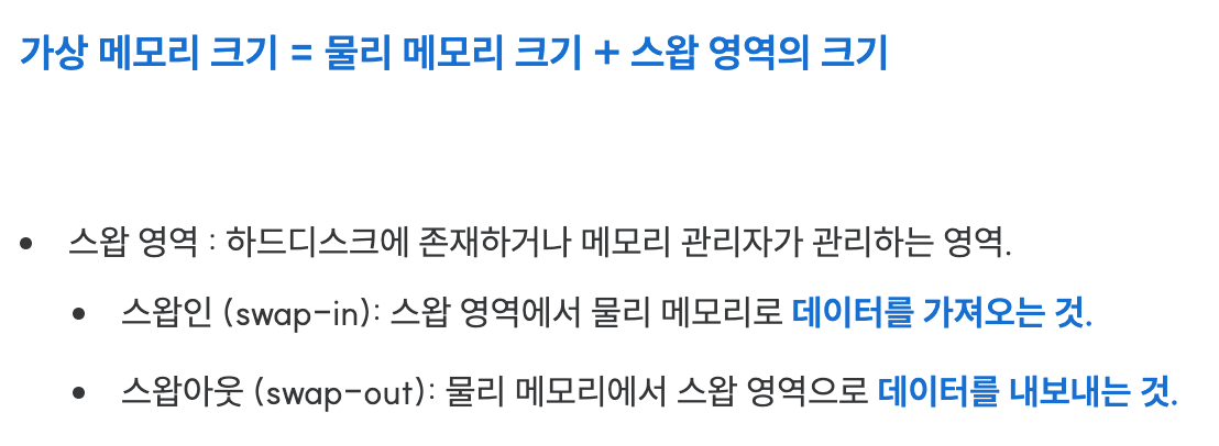 필요하지 않은 페이지를 디스크로 보내고 필요한 페이지를 메모리로 가져오는 과정이다.